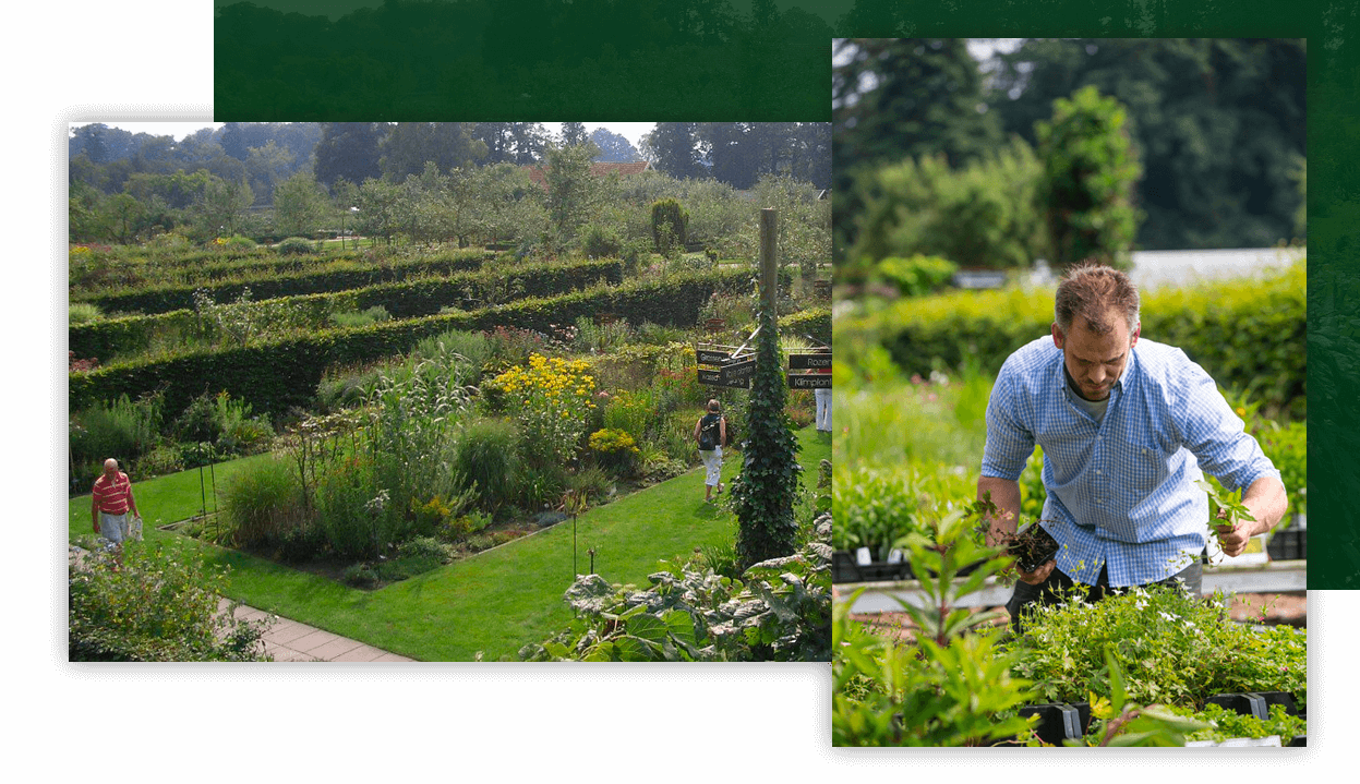 Achter de oude tuinmuur bij kasteel Twickel vind je de ambachtelijke kwekerij van vaste-planten en rozen.