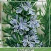 Rozemarijn, Rosmarinus officinalis – Meerjarige struikachtig kruid voor een beschutte plaats. Hoogte: 80 cm. Zaaitijd: (3-4) 5-6. Bloeitijd: 4-6.